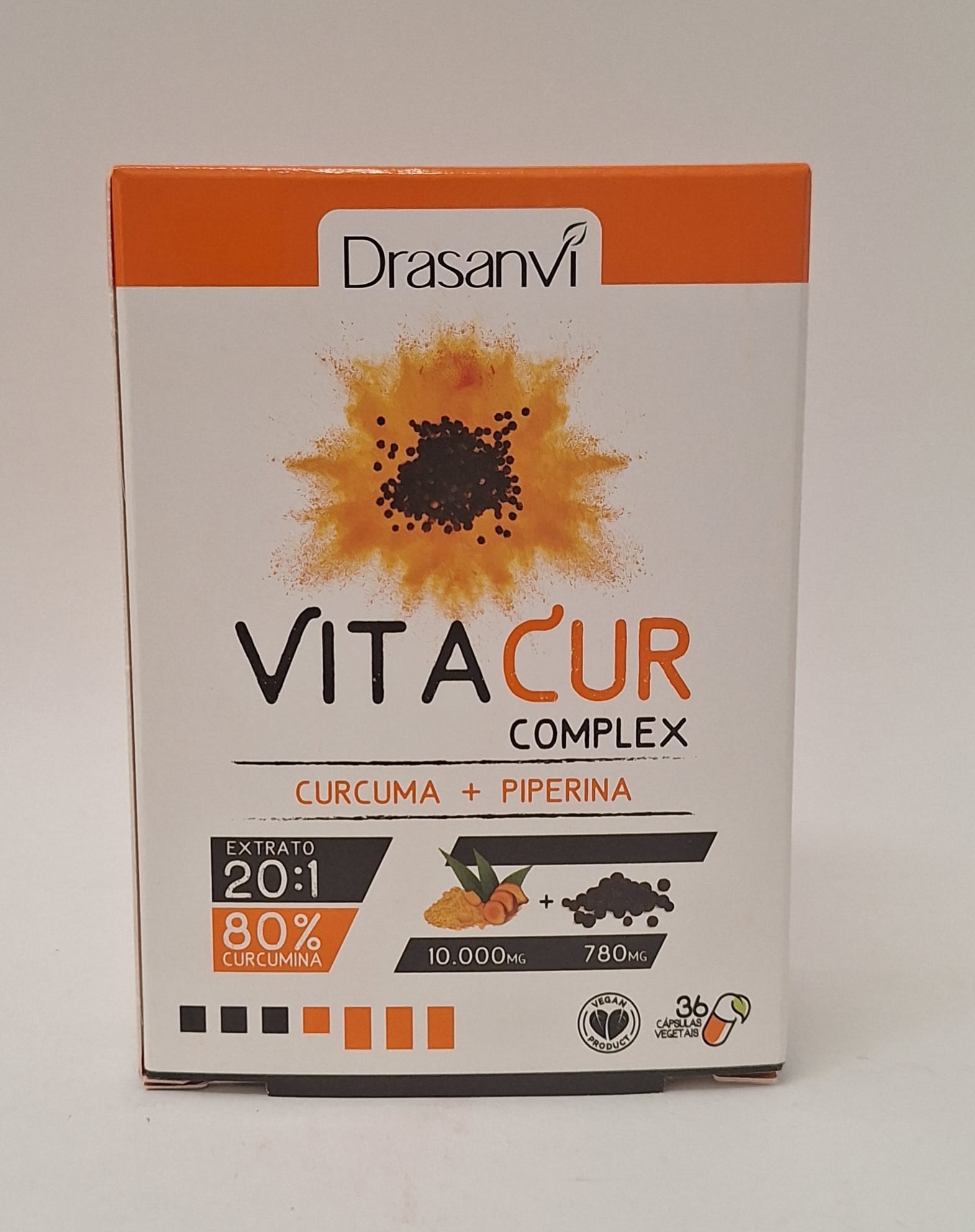 Vitacur Complex de Drasanvi es un complemento alimenticio formulado con ingredientes naturales especialmente seleccionados —extracto seco de cúrcuma con curcumina (280 mg, mínimo 75 %), y extracto de pimienta negra— para potenciar tu bienestar digestivo, articular e inmunológico amazon.com.be+6moremuscle.com+6herbolariosusalud.com+6.